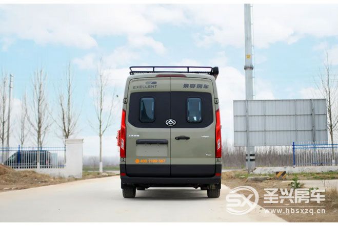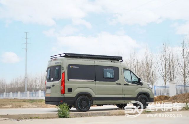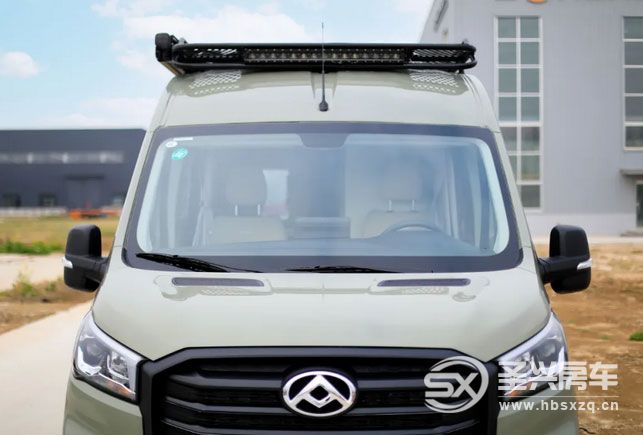 為了更適合戶(hù)外野營(yíng)生活,這款車(chē)還配備了2800X1700mm定制的行李架和側(cè)面爬梯架,車(chē)頂行李架集成了200W太陽(yáng)能電池板和LED高亮度射燈。