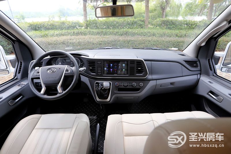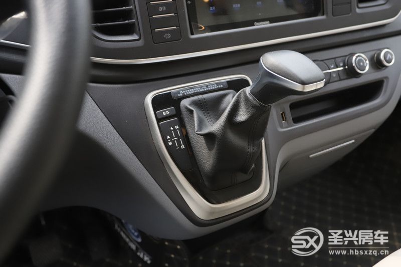 這款房車由最新一代大通V80輕客車型改裝,此前一直為大家詬病的儀表盤在中控位置的缺點,如今已經完全回歸到了方向盤下方,這樣看起來舒服多了。整個中控臺也偏向于簡約設計,保留了中控大屏和一些實體按鍵。駕駛室為2+1的座椅排布。動力總成方面,搭載的是一款2.0T柴油渦輪增壓發動機,最高功率102kW,傳動系統匹配的還是6AMT變速箱,最高輸出300N·m的扭矩。之前試用過這款底盤的老用戶都知道,它采用前置前驅的形式,油耗總體來說比較經濟,百公里約為8-10L之間,80升油箱可以提供還算不錯的續航能力。