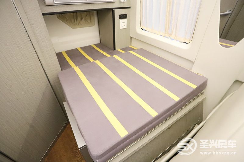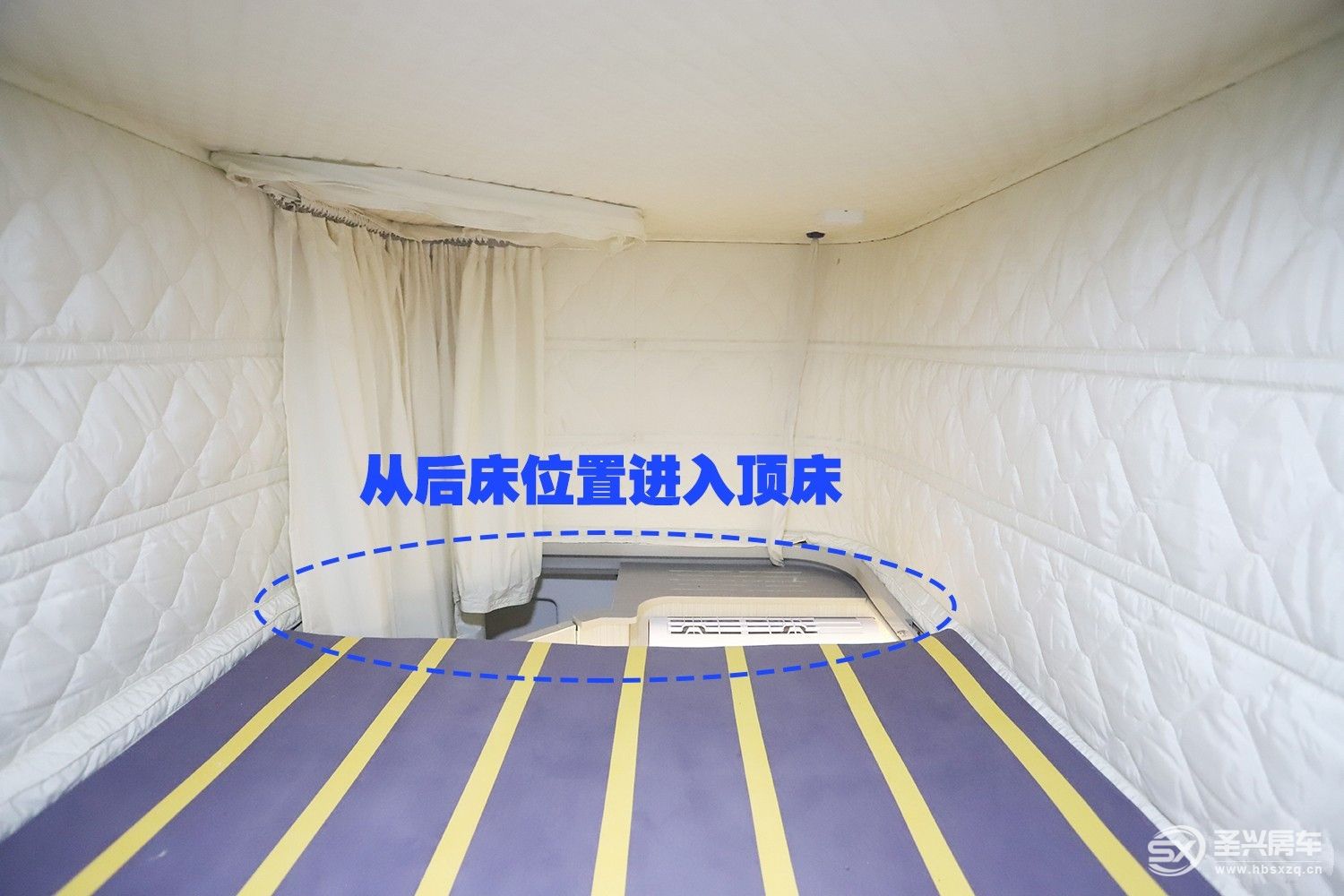 后床采用借位的方式(將單排座椅靠背放平)才能形成一張完整的單人床,最大尺寸2030×920(mm),當頂部彈出式床板放平的時候,后床距離頂部垂直距離也為850mm。