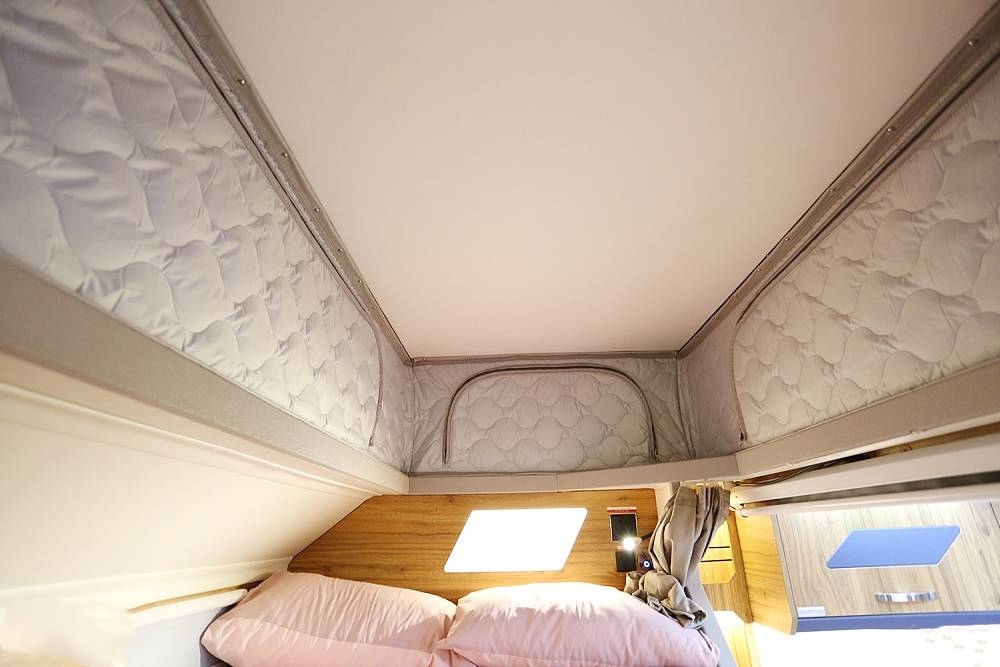 房車額頭部分采用獨家開發(fā)的局部升頂結(jié)構(gòu),不但賦予整車良好的通過性,更保障了額頭床的使用空間和駐車通透感。升頂部分采用雙層帳篷結(jié)構(gòu),外層為高質(zhì)量透氣防雨布,內(nèi)層為舒適海綿保溫層,通透性與保溫性兼具。當(dāng)然,還能通過篷布窗戶進(jìn)入到車頂位置,這樣更適合那些站在高處拍照的攝影愛好者,或者定期到車頂清理太陽能板的灰塵。