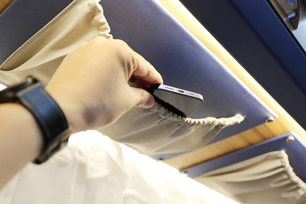 整個生活區(qū)分布的儲物空間多達(dá)20余處,除了常規(guī)的吊柜儲物格、鏤空儲物格以外,還加裝了一些可以提升精致感的小網(wǎng)兜,出行中攜帶的電源線是我們最不容易收納的,放到網(wǎng)兜里面非常合適。