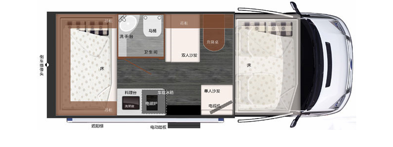 內(nèi)部裝飾特點(diǎn):全順旅居車(chē)從內(nèi)部來(lái)看就是一間小小的套房,餐桌、料理臺(tái)、雙人床、洗漱間等一應(yīng)俱全,配上靚麗的色彩設(shè)計(jì),令人心情愉快的同時(shí),充分享受源于房車(chē)的輕松與便捷。料理臺(tái)緊靠車(chē)窗,在陽(yáng)光下享受烹調(diào)的樂(lè)趣,實(shí)用的餐桌,對(duì)面即是電視纖巧實(shí)用的冰箱,存儲(chǔ)飲料或者食材都很不錯(cuò) 。右側(cè)車(chē)頂位置設(shè)置遮陽(yáng)蓬,選裝車(chē)頂空調(diào),車(chē)身外部噴涂或粘貼外觀標(biāo)識(shí)。