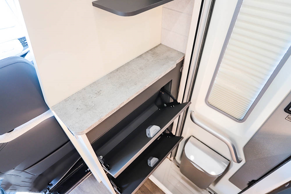 進門處的右手邊貼心的放置了兩層鞋柜、極大的提升了生活便利性,這里充當了車廂的“入戶”玄關功能,在這里可快速完成內外鞋物的轉換,保持車廂內的整潔衛生。