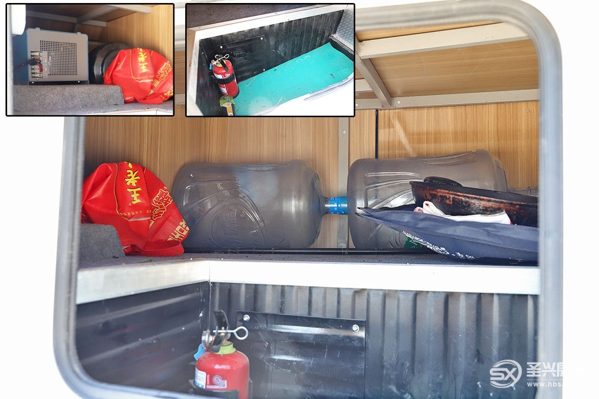 在外部配置上,車(chē)身左側(cè)涉及一些儲(chǔ)物功能,包括前艙和尾艙,市電接口、柴油/尿素加注口也在左側(cè)。