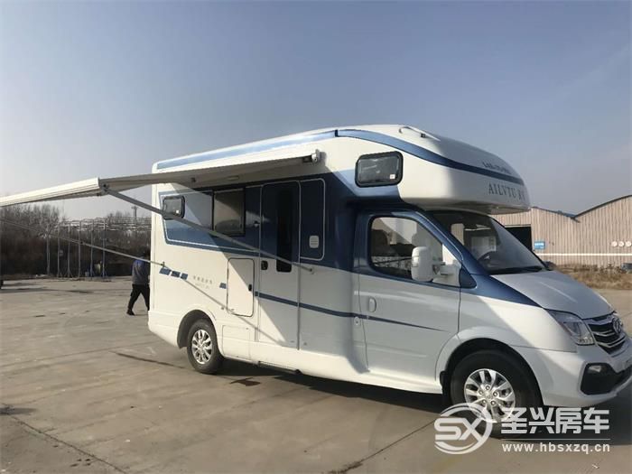 這款車(chē)的外觀主色為白色,搭配藍(lán)色拉花,整體給人優(yōu)雅靈動(dòng)的感覺(jué)。外部配備了:遮陽(yáng)棚、外置廚房、外置儲(chǔ)物倉(cāng)、重力注水口、市電接口等設(shè)備,功能豐富。