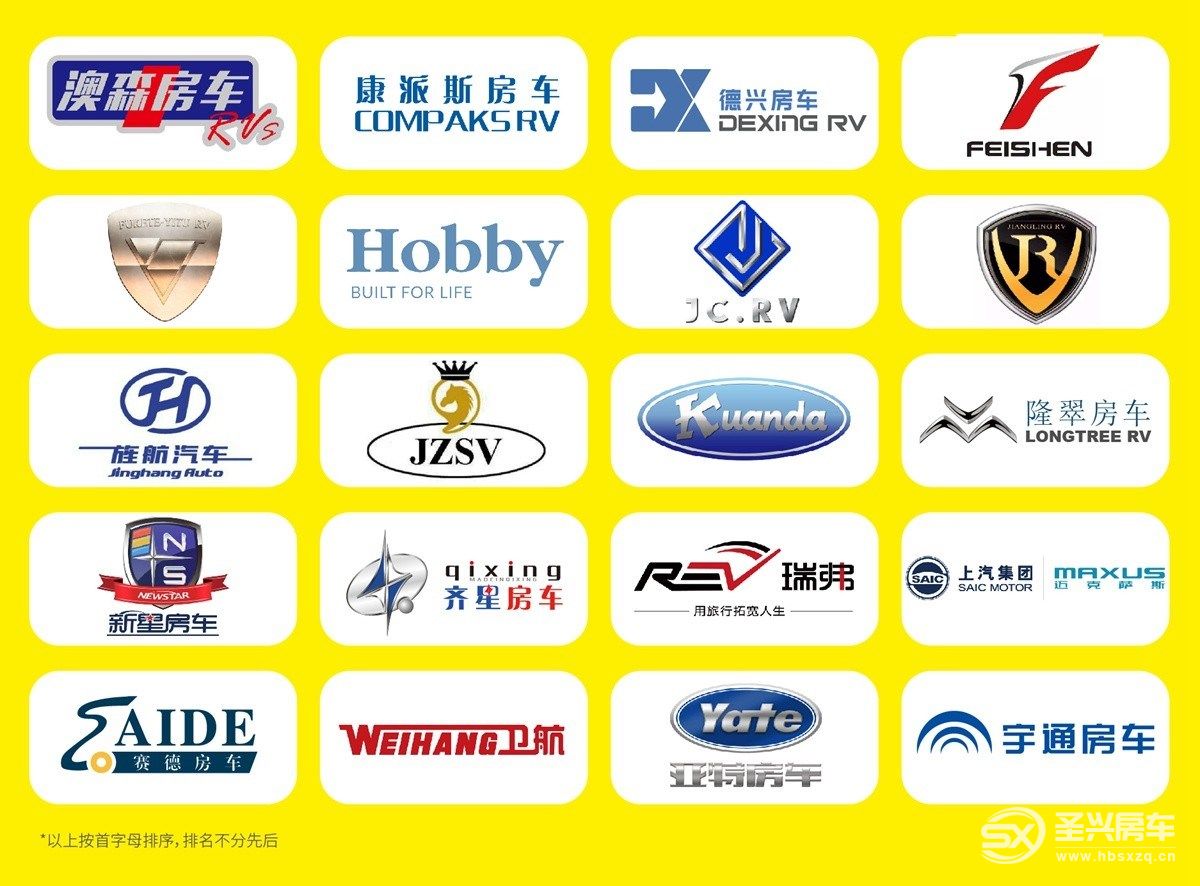 澳森拖掛房車、德興房車、飛神房車、福客特房車、Hobby進(jìn)口拖掛、駿馳房車、江鈴房車、旌航房車、佳卓房車,寬大房車、康派斯越野拖掛、隆翠房車、齊星房車、瑞弗房車、賽德房車、上汽大通、衛(wèi)航房車、新星房車、亞特房車、宇通房車。(以上排名按首字母排序)。
