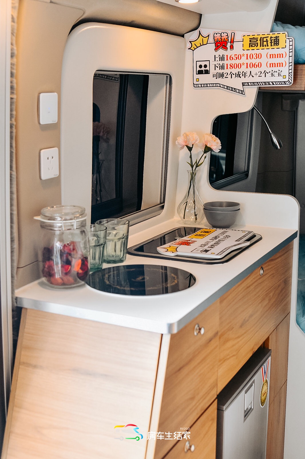 在提升使用便捷性方面,RV90 B型裝備了140L大容量凈水箱,為同級車型中最大,滿足房車旅行的日常需求,而同級車型最大衛生間空間則讓出行洗浴變得更加便捷。外置卡式爐增加外置抽拉灶具,灶具倉與車內隔絕,戶外安然烹飪中式菜肴。超大儲物空間滿足各種生活應用場景下的儲物需求,可容納26寸拉桿箱,自行車等。