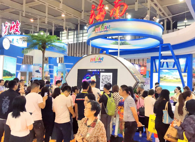 海南展區(qū)圍繞“陽光海南 · 度假天堂”為主題,展館融合貝殼型文化展示墻、帆船型展示屏,讓走進(jìn)展位的每一位觀眾更好的了解海南,學(xué)說海南話,帶動展區(qū)良好的互動氛圍。
