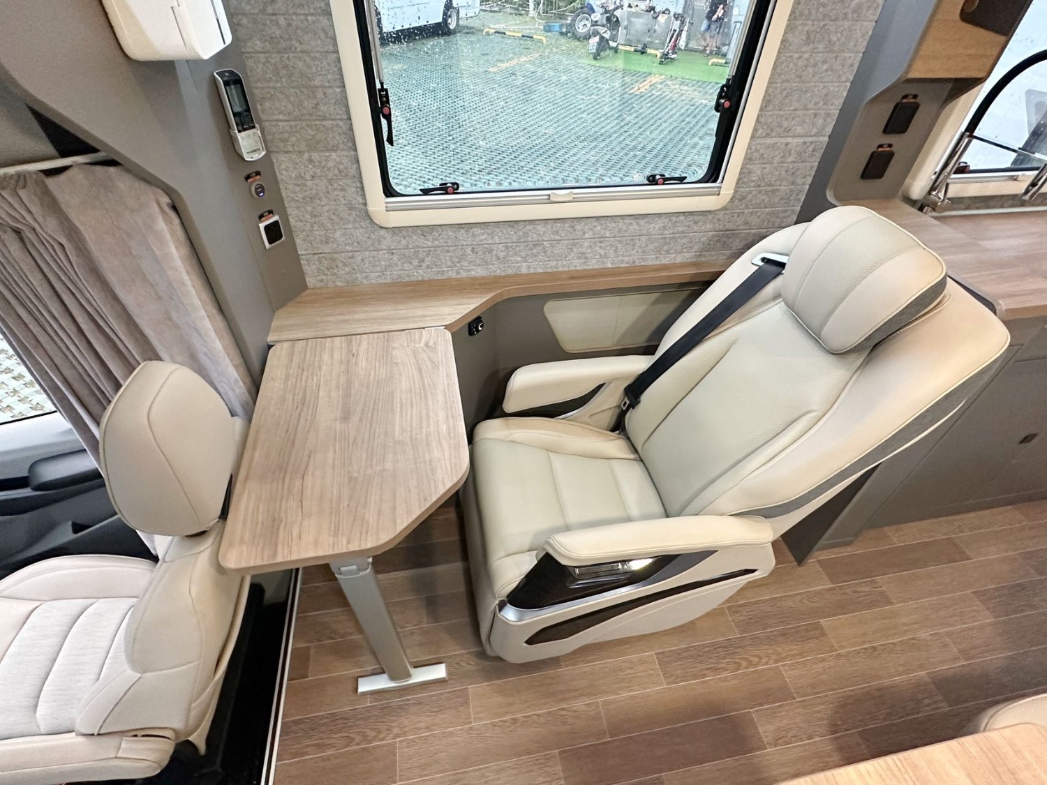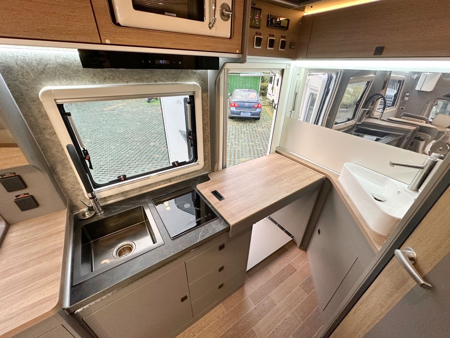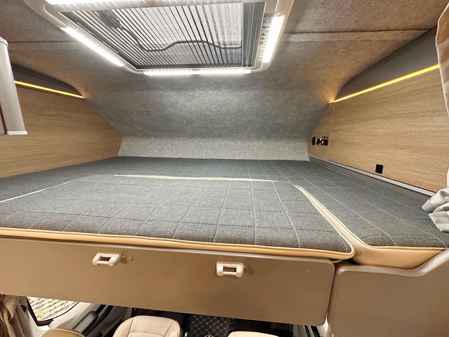 電器配置:頂置多美達IBIS4變頻空調(diào)、燃油鍋爐、網(wǎng)絡(luò)電視機、航空座椅、電動吊床、卡座拼床、額頭大床、隱藏式廚房操作臺、洗臉池、洗菜池、洗衣機、微波爐、電磁爐、多美達旋轉(zhuǎn)抽拉馬桶、淋浴花灑、電動換氣扇、超大側(cè)邊窗、新能源充電口+220家用充電口、戶外抽拉柴油灶、戶外遮陽蓬、菲亞瑪上門扶手、電動踏步。