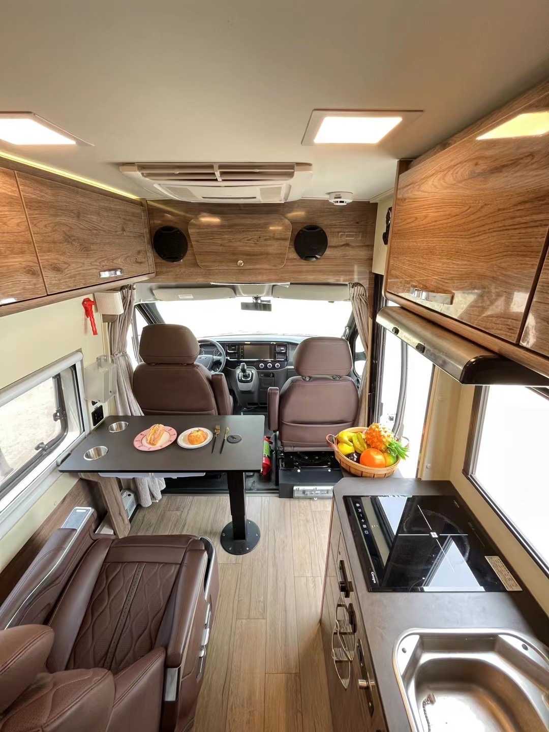 車輛配置:2.2T柴油發(fā)動機、6AMT變速箱、雙3000W逆變器、800AH鋰電、350W太陽能板、3000W維度底置發(fā)電機、多美達(dá)雙轉(zhuǎn)子變頻空調(diào)、燃油暖風(fēng)熱水、航空按摩座椅、2.5公斤大宇洗衣機、142L倉浪雙開門冰箱、吸頂電視,音響,電磁爐,抽油煙機,洗手池,雙向換氣扇,賽特福德旋轉(zhuǎn)抽拉式馬桶,淋浴花灑,后縱床上下鋪,菲雅瑪戶外遮陽篷,電動踏步,戶外抽拉式柴油灶,戶外淋浴,加裝三眼拖車杠帶電動車支架和后置備胎架等!