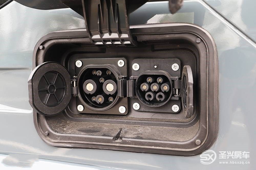 為保持車身整體性,??吞卣鞣卟]有配備過多車外配置,我們僅在車尾找到了注水口和市電接口,值得一提的是??吞卣鞣叱潆娊涌谥С挚臁⒙湫问?,和新能源乘用車一樣,無論是城市充電樁還是家用充電線都可以為鋰電池充電。