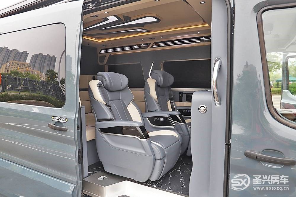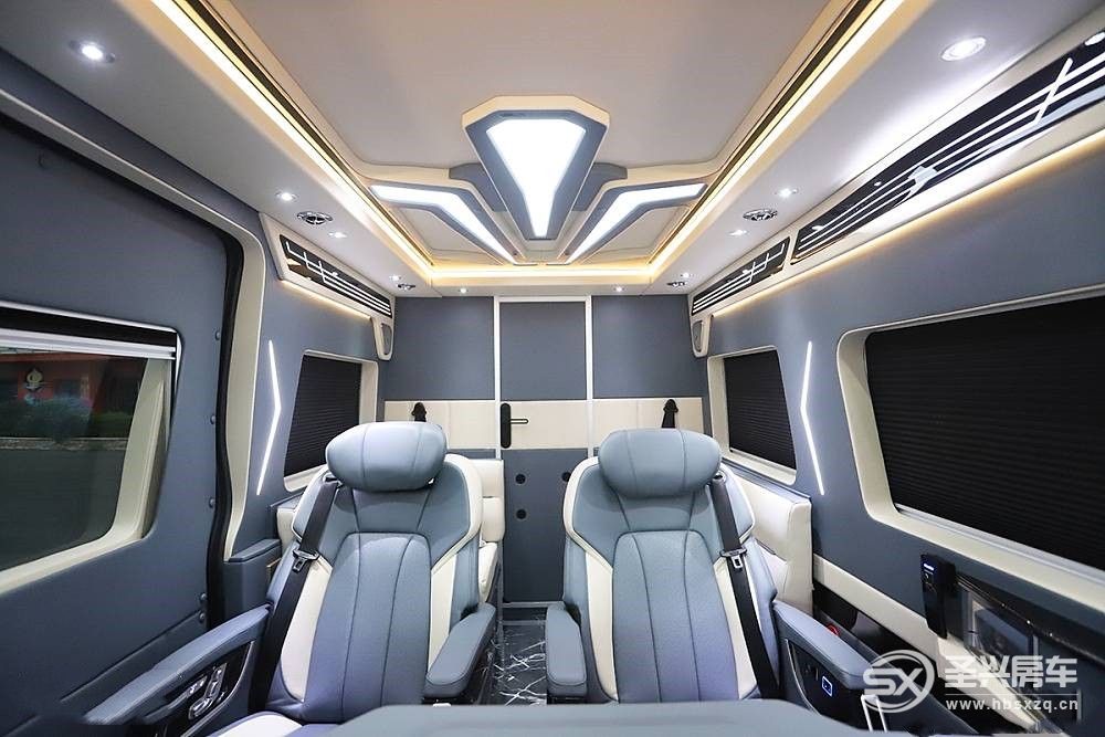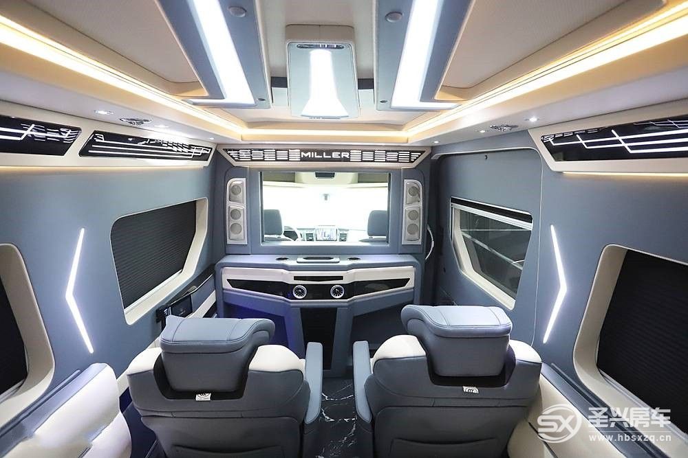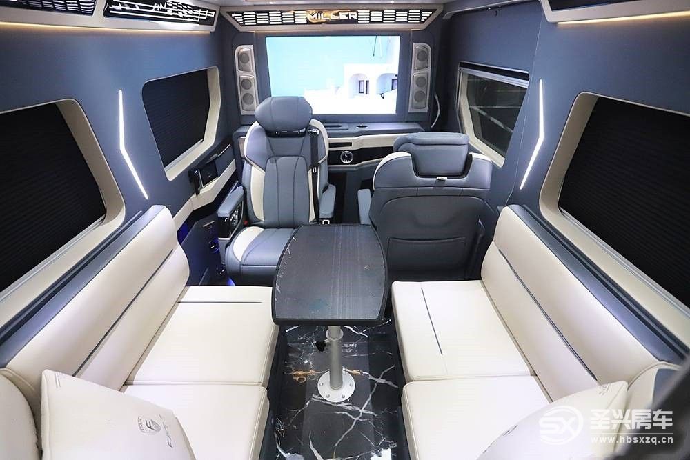 尾部是獨立廚衛間,在空間有限的B型房車里并不常見,大面積的軟包處理突出了豪華感,配置豐富也很符合商旅車定位。