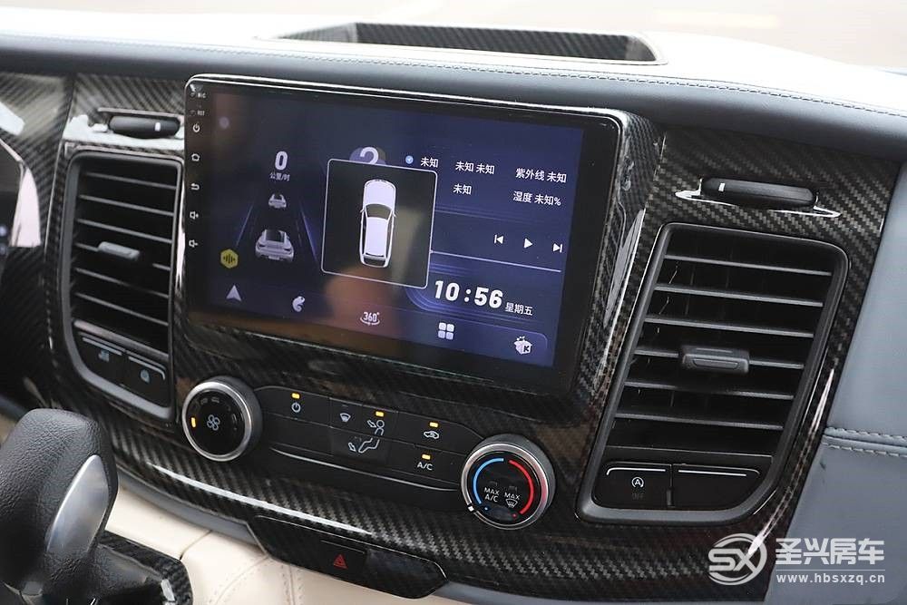 生活區與駕駛室通過內置電話溝通交流,旁邊的操作屏幕可控制車內全部燈光、隱私簾、燃油加熱器、空調風量/溫度及顯示水量/電量信息。