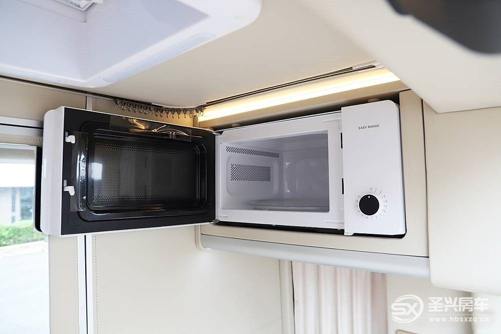 廚房區臺面上方配有微波爐,有助于用戶加熱簡餐。