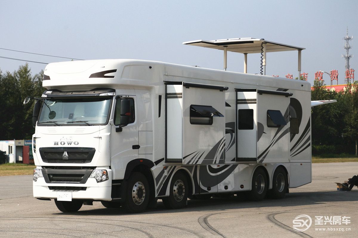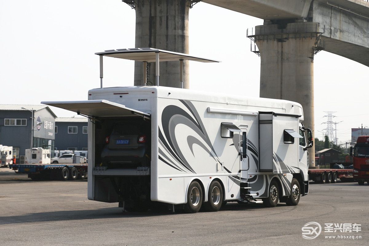 豪華重卡8×4房車依托重汽豪沃底盤依托先進的重型研產(chǎn)技術(shù),結(jié)合其自身多功能的特性,不僅外觀霸氣,接近12米的整車長度也讓這個大塊頭在車流中傲視群雄,三個獨立拓展艙實現(xiàn)了空間上疊加的優(yōu)勢效應(yīng),工藝及板材方面也幾乎無可挑剔,強大的動力推動這個大家伙也毫不費力,飛橋式升頂露臺對于戶外來說還可實現(xiàn)會議洽談、婚紗攝影、生日party、朋友聚會等多場景需求;車尾自帶車庫甚至可以裝下一輛奔馳SMART,加之超大水電能源配置堪比五星級酒店,當然這樣的大玩具對于普通家庭來說猶如奢侈品,能擁有它的肯定也非凡人。