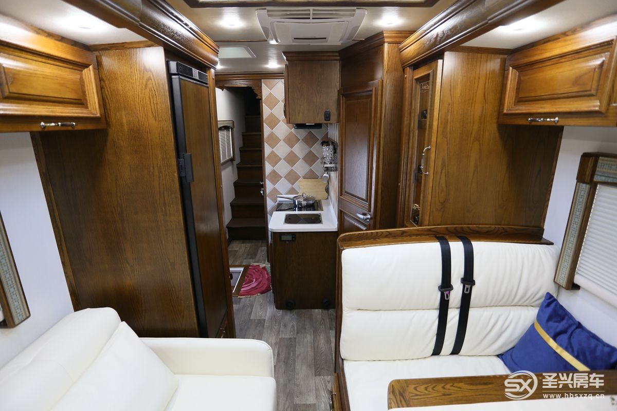 豪華重卡8×4房車基于重汽豪沃T7H 8×4底盤打造,整車長度11.99米,接近12米級,寬度2.5米、高度3.98米,后三橋四橋則為驅(qū)動橋。配備1000L的超大容量油箱,綜合實際路況等方面因素,這款車至少可以跑3000公里。由于引進了德國MAN技術(shù)的TGA柔性車架,可保證行駛過程中的可靠性及車架扭轉(zhuǎn)剛性;生活艙部分采用了玻璃鋼三明治箱體結(jié)構(gòu),車廂和駕駛室融為一體;整車核載人數(shù)達到了6人,足以滿足多人出行需求。