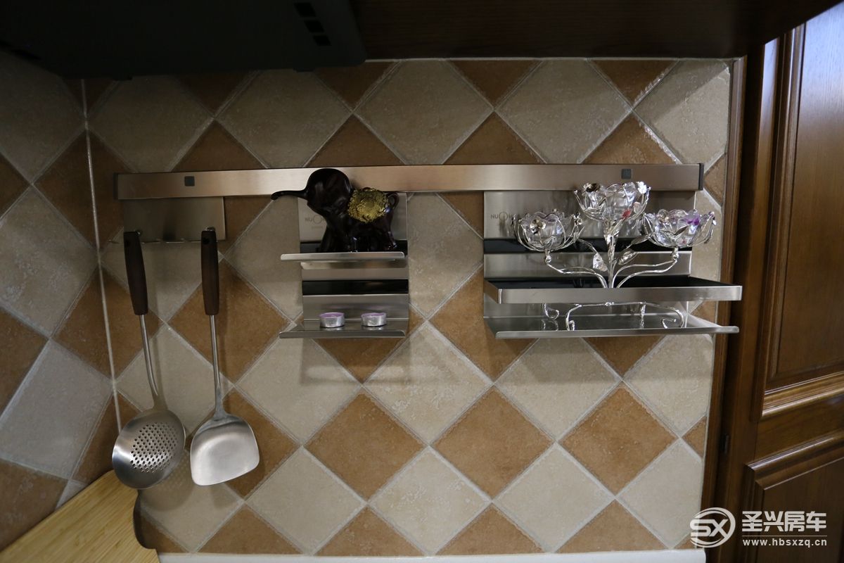 廚房區(qū)功能一應(yīng)俱全,采用一體化進口三眼爐灶+烤箱組合,帶蓋式不銹鋼洗手池、抽油煙機及置物架,功能齊全,使用舒心。