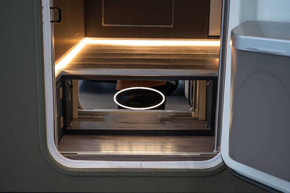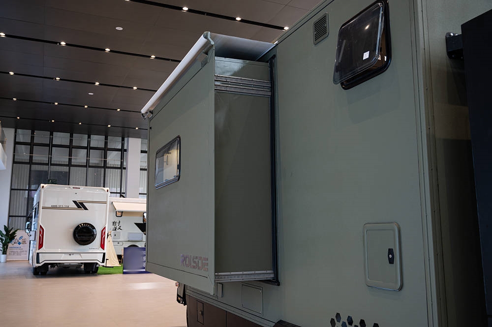 車身右側(cè)上方是4M手動遮陽棚,并有完整的戶外廚房區(qū),包括戶外桌板、戶外柴油灶、戶外水龍頭、220V戶外電源插座,諸多功能保障日常烹飪自由。除標準配置外,豐富的選配項目還可以滿足用戶個性化定制需求,隨時隨刻讓您享受輕松自在的戶外生活。