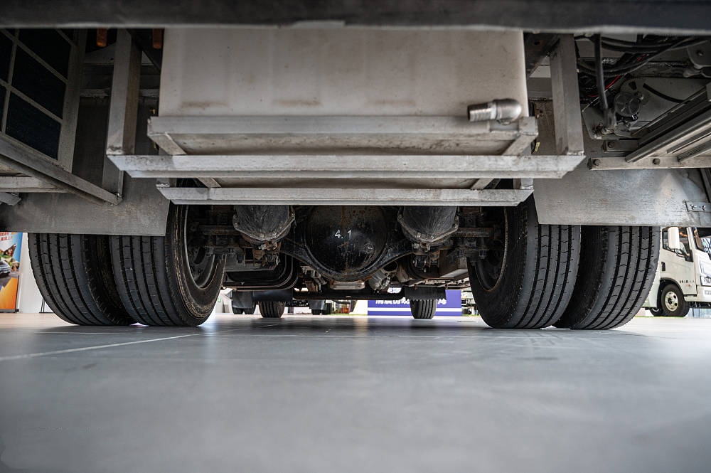 五十鈴700P底盤采用了全浮式駕駛室和全鋼梁式框架結(jié)構(gòu),具有良好的剛性和強度,能夠承載較大的載荷和適應(yīng)不同的路況。底盤還配備了前雙后四空氣懸架系統(tǒng),可以根據(jù)不同的載重和路面調(diào)節(jié)車身高度,提高行駛的舒適性和穩(wěn)定性。后輪驅(qū)動搭配后雙胎提供穩(wěn)定強勁的動力,后橋使用雙輪差速器,可有效地分配動力和扭矩,提高牽引力和通過性。