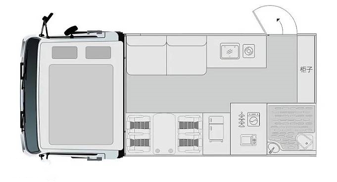 從前到后的布局依次為駕駛室+額頭床、會客區(qū)+沙發(fā)床、廚房區(qū)以及衛(wèi)浴區(qū),布局形式充分利用大尺度車廂空間,整車內(nèi)部空間寬敞舒適,采用后上門單拓展的布局方式,可滿足六人在車內(nèi)同時休息各項功能區(qū)的劃分也比較規(guī)整。