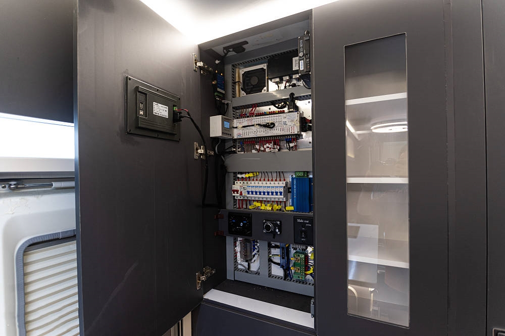 其中一段吊柜中內(nèi)嵌有一臺大金1.5匹變頻空調(diào),擁有獨特的風道設(shè)計和靜音技術(shù),可快速安靜的調(diào)控車內(nèi)溫度。