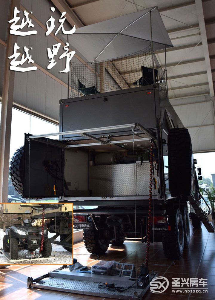 可以穿越熱帶雨林、高原山峰和沼澤濕地,甚至能抵達(dá)其他車輛無法通過的低凈空高度。后車廂內(nèi)部則有熱水器,以及燃油取暖用的油箱。這一點(diǎn)奔馳倒做得相當(dāng)細(xì)心,后尾箱空間巨大,放一臺全地形車不足話下,還擁有電動升降設(shè)備,裝卸無需費(fèi)力,一鍵搞定。