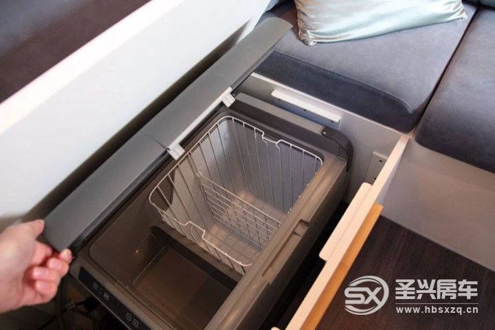 環(huán)形沙發(fā)內(nèi)集成了優(yōu)質(zhì)的絕緣冷藏箱。65L容量的冷藏箱所提供的存儲空間足以讓4個(gè)人度過更長時(shí)間。冷藏箱耗電量非常低,無論外面的溫度如何,均能夠長期存儲冷凍的供應(yīng)品。