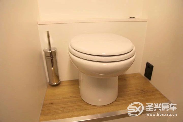 廁所內(nèi)安裝了帶有粉碎機(jī)的電動馬桶。此類馬桶用水量少于傳統(tǒng)馬桶。將廢棄物磨碎可以防止堵塞黑水系統(tǒng)。
