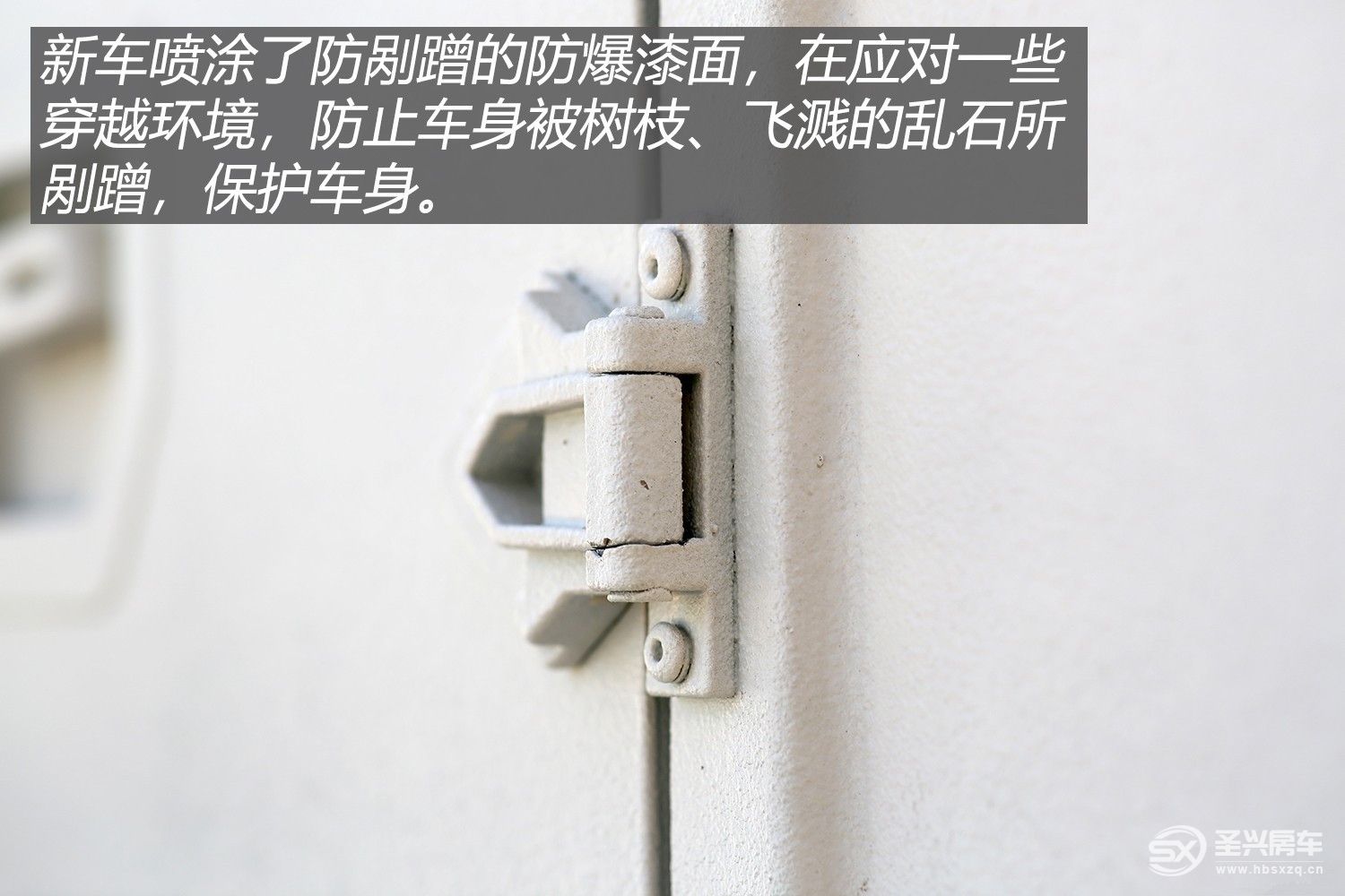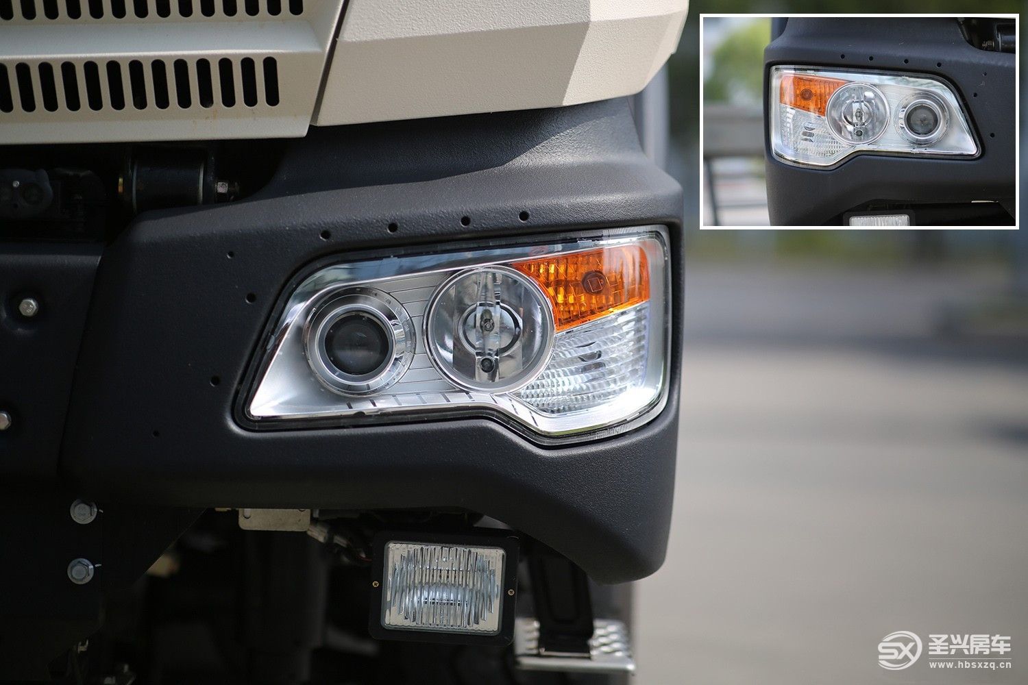 前保險杠采用的是鹵素大燈組,造型簡約,近光燈帶有透鏡,當然駕駛室頂部也配備了LED輔助照明燈組,便于戶外使用。
