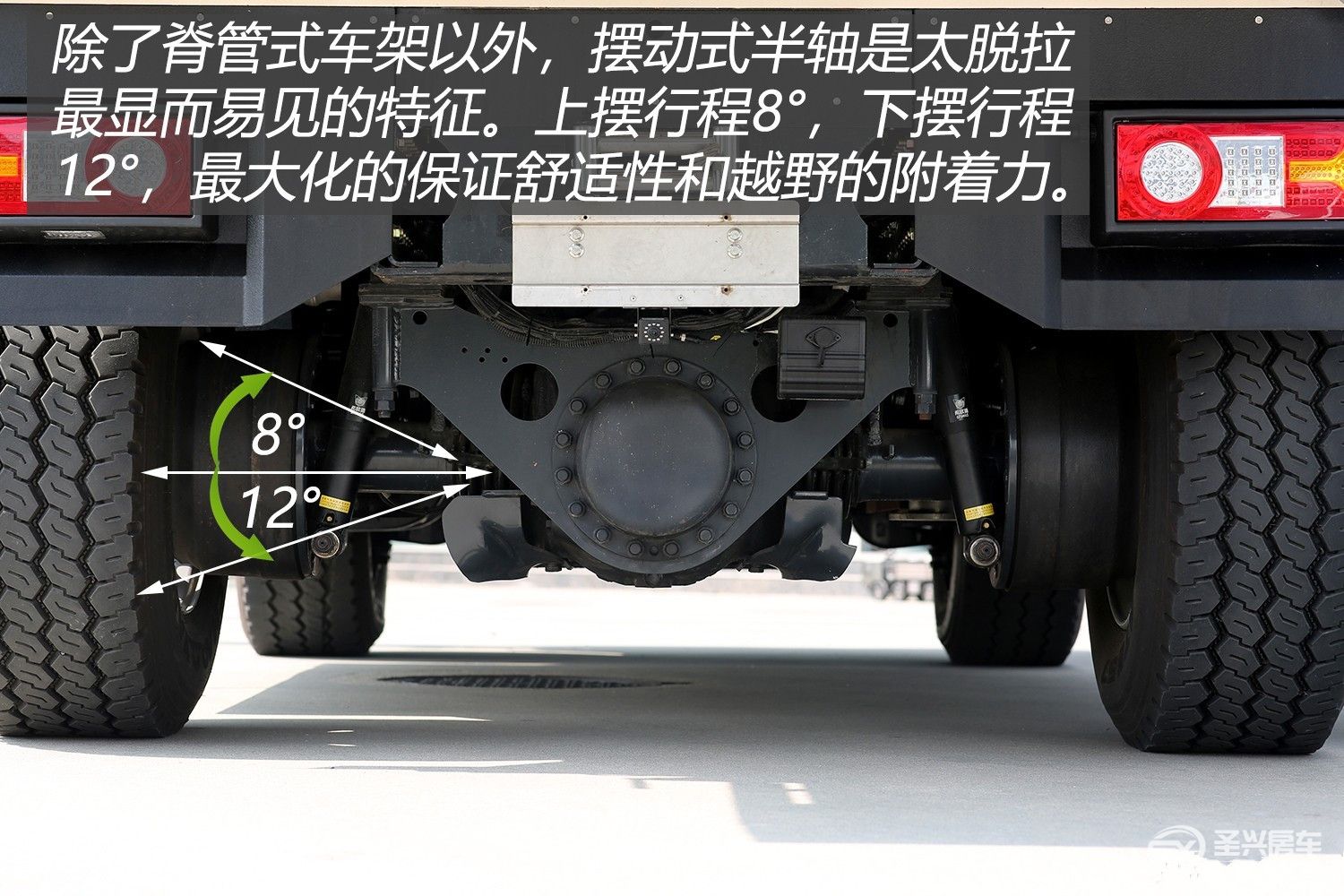 如果說中央脊管式車架是太脫拉的核心,那么擺動式半軸是整個車架的核心,左右半軸可以自由上下擺動,而且無需額外的擺臂裝置,半軸外殼可以直接受力,在車架中央的主減差速器充當了活動樞紐!這種設計,尤其是在房車上,在極端難走的路況下,只有車輪在上下擺動,而箱體部分基本不受太大的影響,那么箱體部分就會更安全、更穩定。
